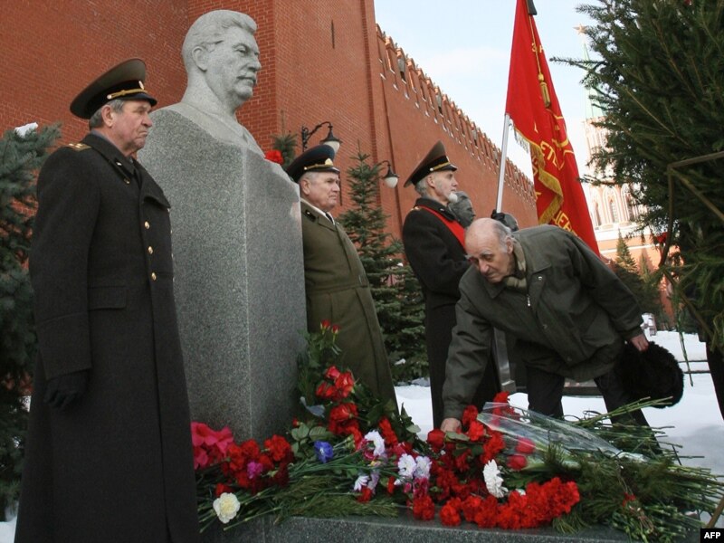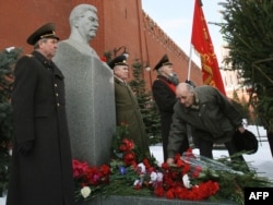 Активисты Коммунистической партии России возлагают цветы на могилу Сталина. Москва, 5 марта 2009 года.