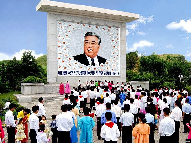 Возложение цветов к портрету вождя Северной Кореи Ким Ир Сена. Пхеньян, 8 июля 2007 года.