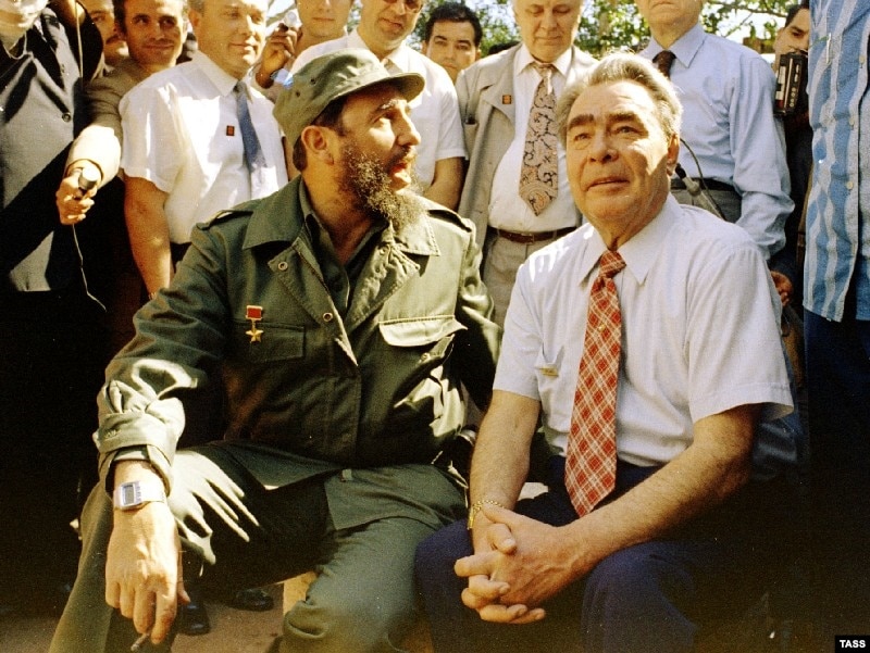 Вождь Кубы Фидель Кастро и советский лидер Леонид Брежнев. Москва, 1976 год.