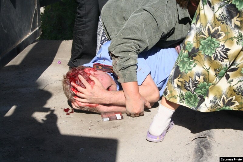 Арон Атабек, раненный в результате столкновений с полицейскими в Шаныраке 14 июля 2006 года.
