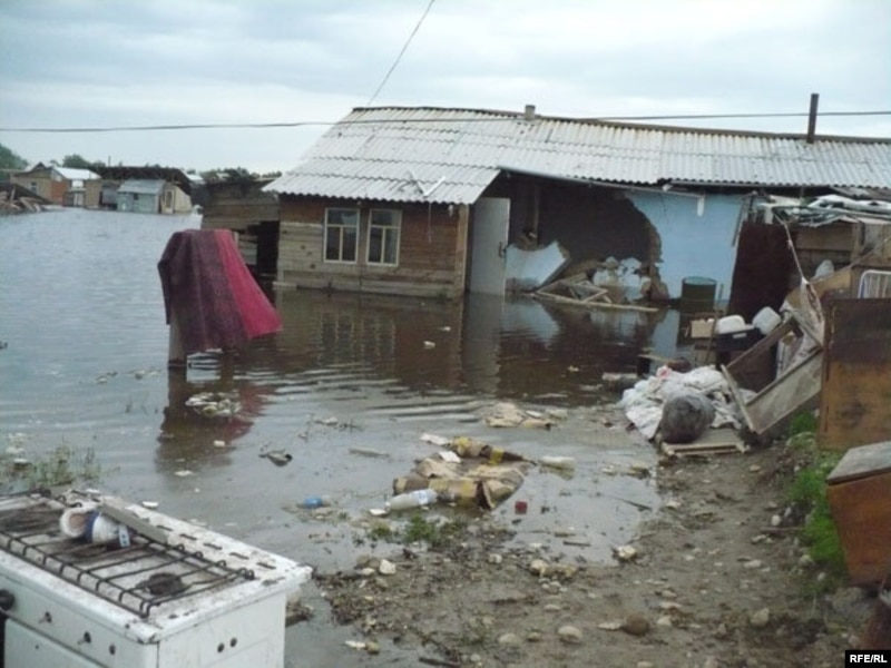 Разрушенные в результате наводнения дома в Шаныраке. Май 2009 года.