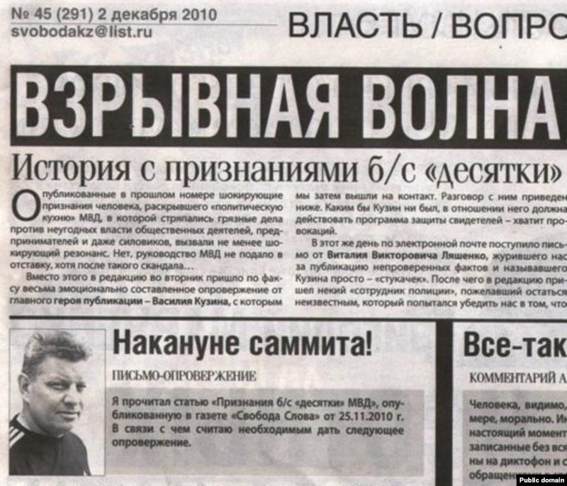 Газета «Свобода слова» в своем номере за 2 декабря опубликовала «Письмо-опровержение» Василия Кузина. «Я прочитал статью «Признания б/с «десятки» МВД», опубликованную в газете «Свобода слова» от 25.11.2010 г. В связи с чем считаю необходимым дать следующее опровержение», – пишет Василий Кузин.