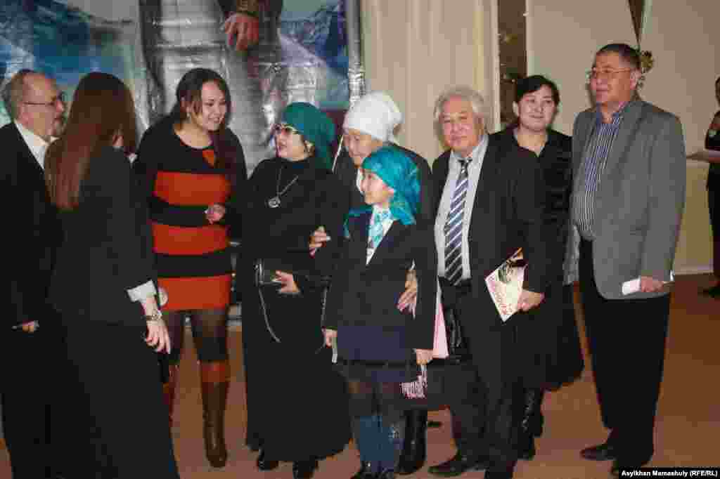 В центре – Зейнеп Ахметова, невестка Бауыржана Момышулы. Справа – Макпал Жунусова, вдова Заманбека Нуркадилова. Алматы, 17 января 2014 года.