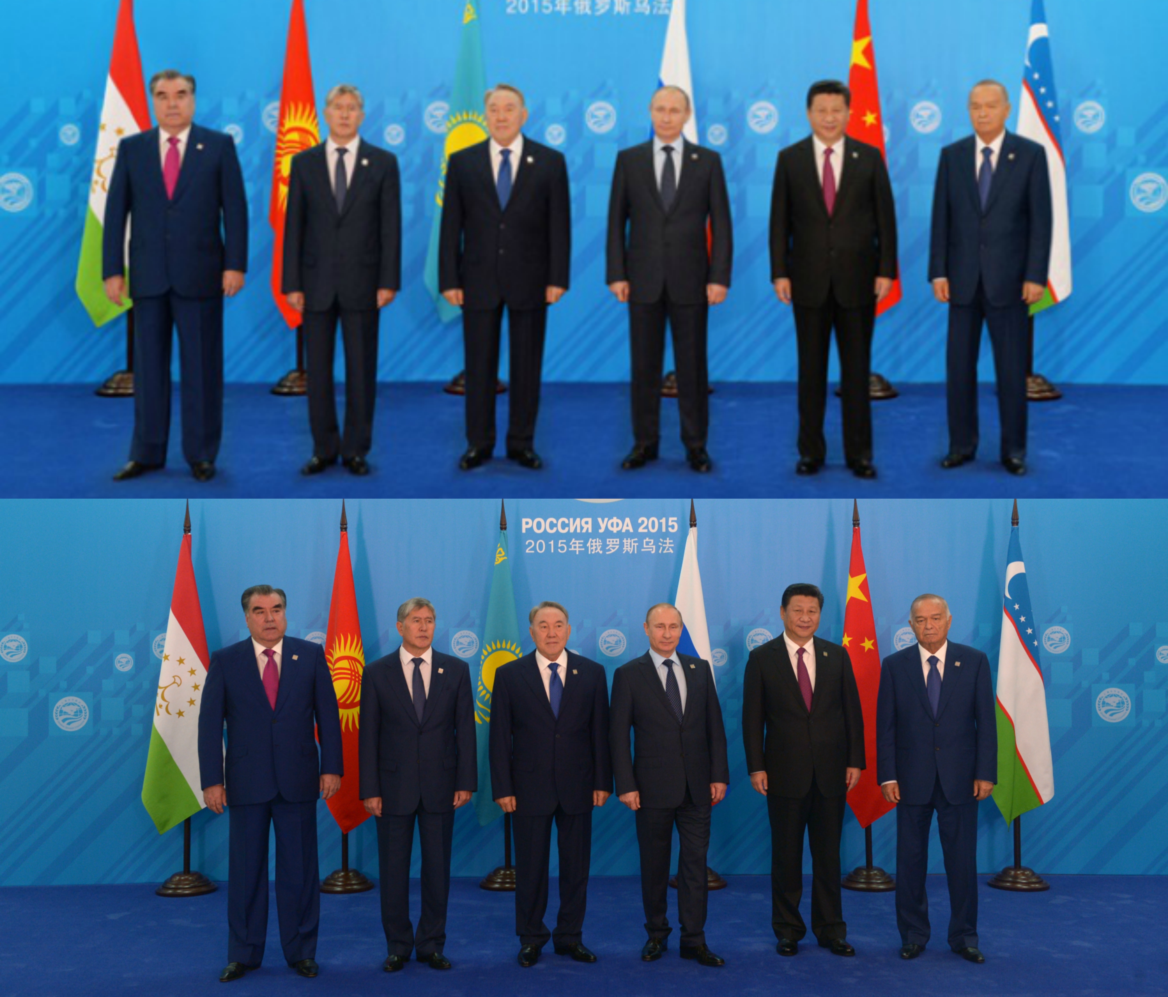 На ней Ислам Каримов (второй справа), рост которого был равен примерно 170-172 сантиметрам, был почти одного роста с Виктором Януковичем (первый справа, рост – примерно 190-193 сантиметра) и Эмомали Рахмоном (третий справа, 180-183 сантиметра).